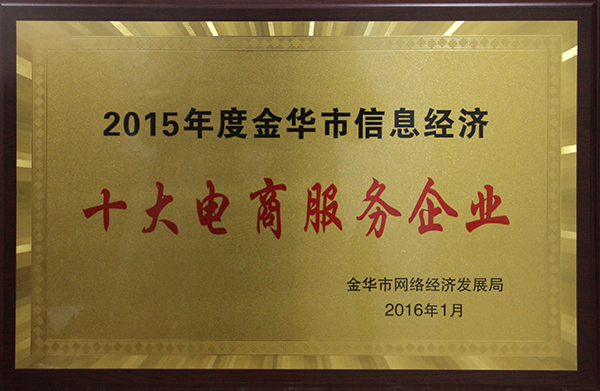 - 被評為金華市“十大電商服務(wù)企業(yè)”,榮獲“2015年度金華市信息經(jīng)濟百強”